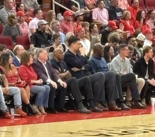 姚明与大梦来到火箭主场观战!队记:姚明让大梦看起来像后卫